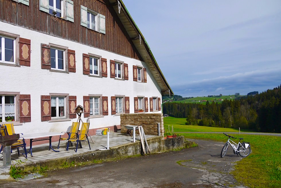 Am nächsten Morgen geht es los auf das letzte Stück unserer südwestlichen Radrunde Allgäu. Auch heute scheint die Sonne nur über den dichten grauschwarzen Wolken. Den ursprünglichen Plan über die weit hügeligeren Hörnerdörfer zu radeln, lassen wir zugunsten dem zeitlich kürzeren und flacheren Iller Radweg unter den Frühstückstisch fallen.