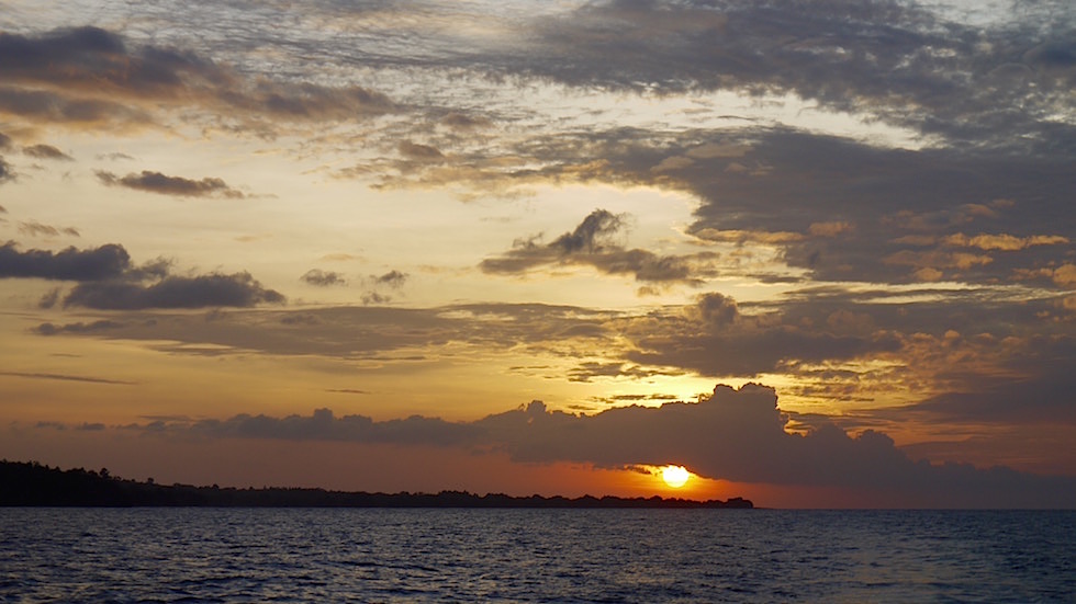 Die See ist ruhig, der Sonnenuntergang genial. Es kehrt Ruhe ein und alle gehen nach und nach zu ihren Matratzen in voller Erwartung, was der nächste Tag bringen mag. Trotz der immer währenden Motorengeräusche kann ich relativ gut schlafen und genieße die frische Brise, die sich immer mal wieder zu unserem Matratzenlager verirrt.