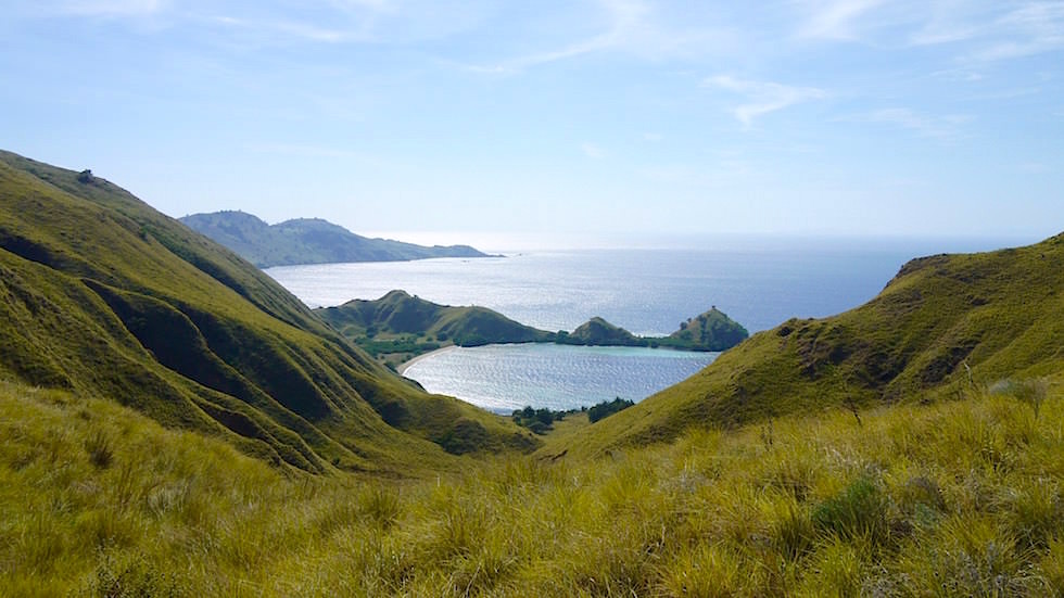 unbewohnte Nordküste von Sumbawa IndonesienWir ziehen weiter vorbei an der Nordküste von Sumbawa – Stunde um Stunde. Sie scheint völlig unbewohnt zu sein. Grüne Hügel und Berge sind die einzigen Begleiter.