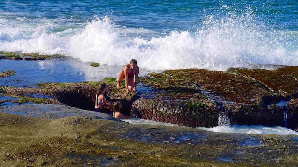 Auch die Felsen mit ihren kleinen Ausbuchtungen, die ständig mit den aufprallenden Wellenspitzen geflutet werden, sorgen für jede Menge Spaß und Lachen!